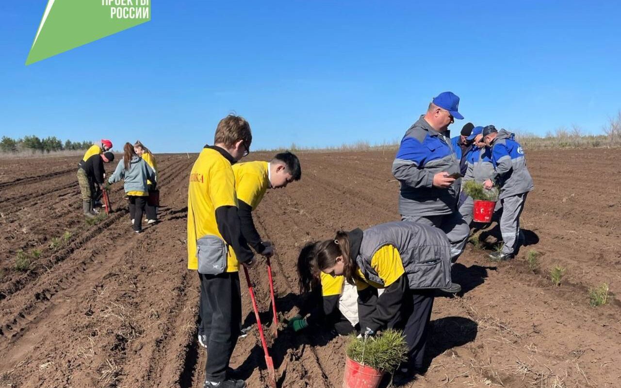 Ученики, ребята из «Движения Первых», педагоги, представители бизнеса, работники лесничеств Домбаровского, Адамовского, Кваркенского, Новосергиевского и Сакмарского районов уже высадили более 430 тысяч саженцев вяза, сосны и ясени на площади 97,7 га.