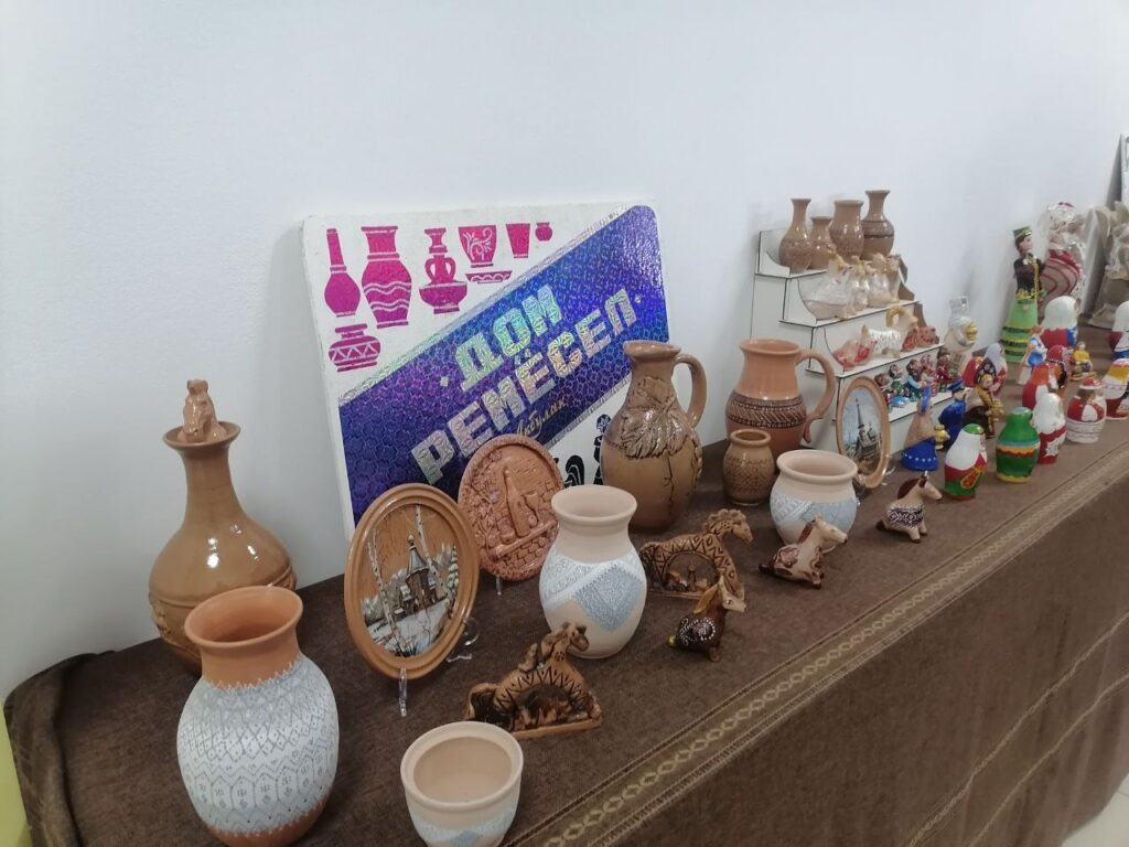 Особый интерес вызвала выставка мастеров из Акбулака. Руководитель Дома ремёсел Татьяна Никонова и мастер-художник Надежда Мажура представили керамическую посуду, свистульки из местной глины, изделия из дерева, бисера, жгута и теста.