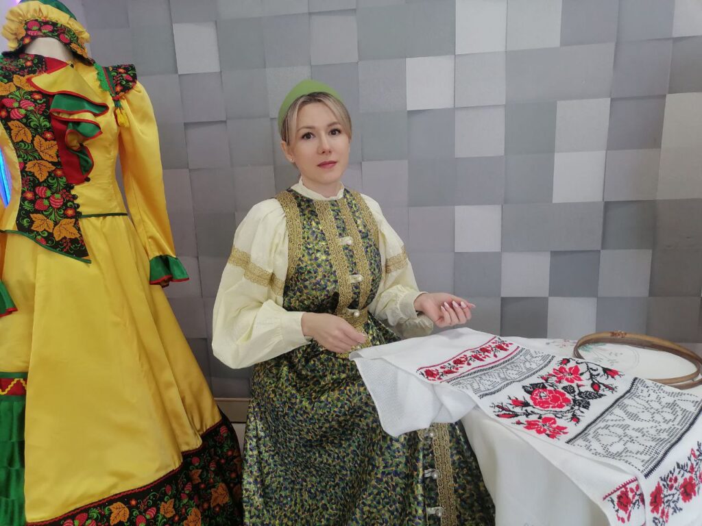 Колоритный праздник продолжился в фойе. Соль-Илецкий краеведческий музей представил женские костюмы разных народов Оренбуржья. Здесь же за работой можно было увидеть вышивальщицу за пяльцами. Гости с удовольствием фотографировались на память в национальных фотозонах.