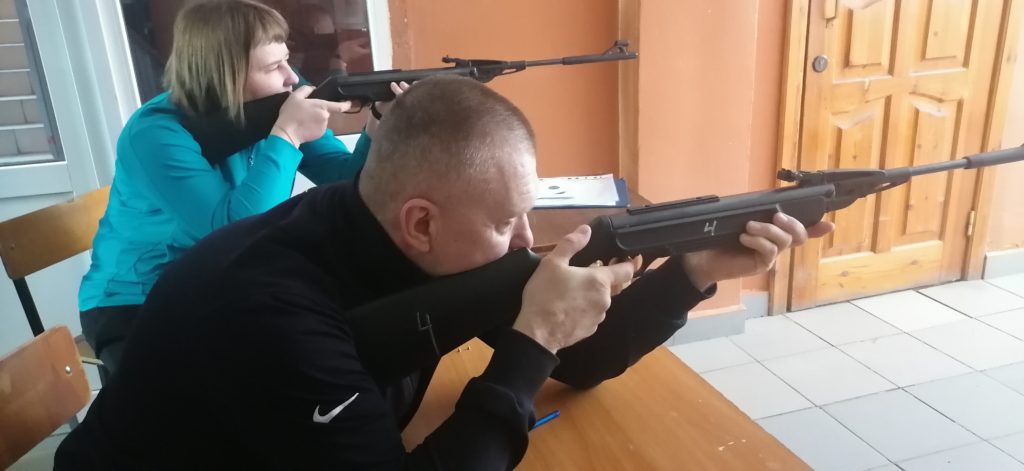 В школе № 1 в зональном этапе играли пять команд из школ № 3, № 4, № 5, № 1, детского дома. В стрельбе из пневматической винтовки соревновались по два игрока от каждой команды, три выстрела они могли сделать пробных и два – в зачёт. В целом, каждый спортсмен мог участвовать в двух видах – волейбол плюс стрельба или теннис. В этой зоне лучшими стали педагоги из школы № 1.