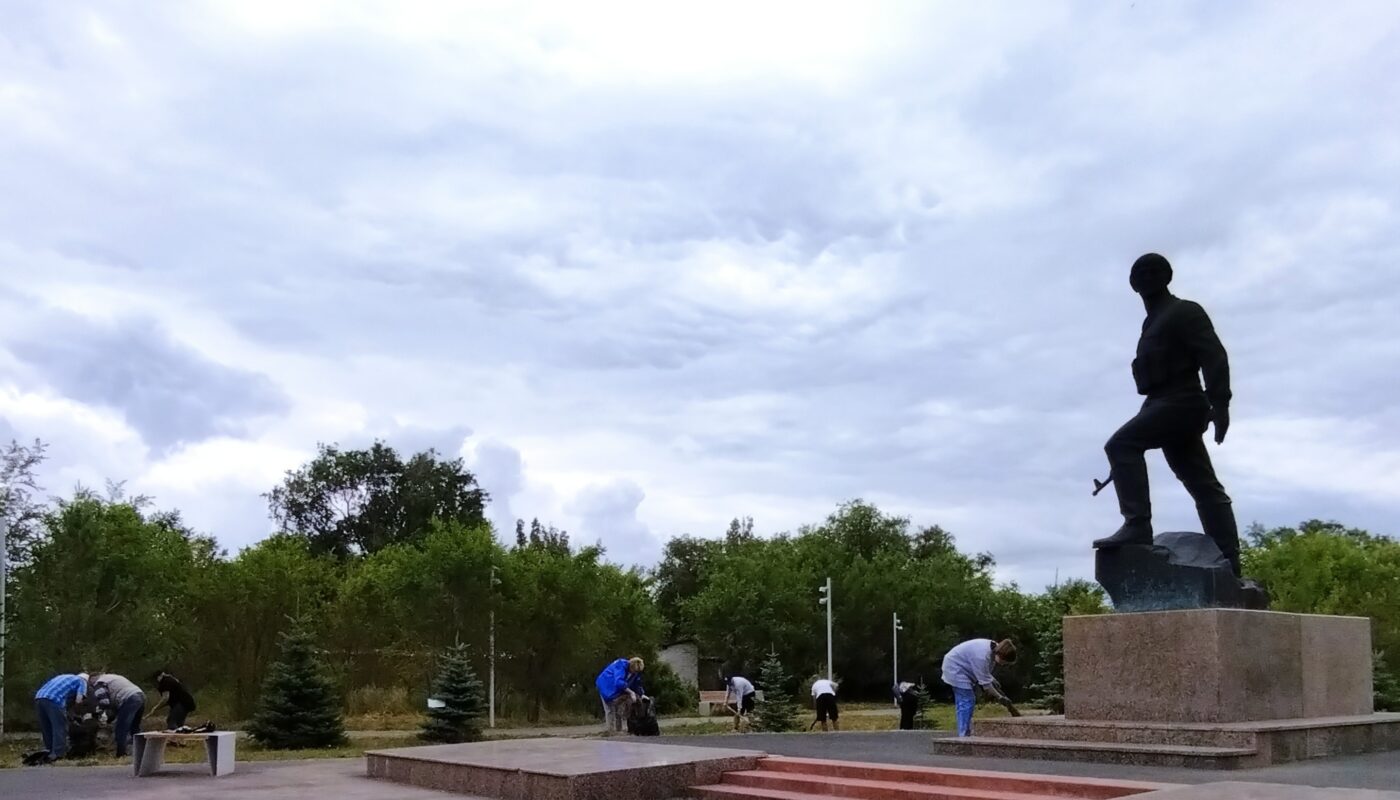Накануне Дня ветеранов боевых действий в парке Горняков привели в порядок территорию вокруг памятника Герою Советского Союза Вячеславу Александрову.
